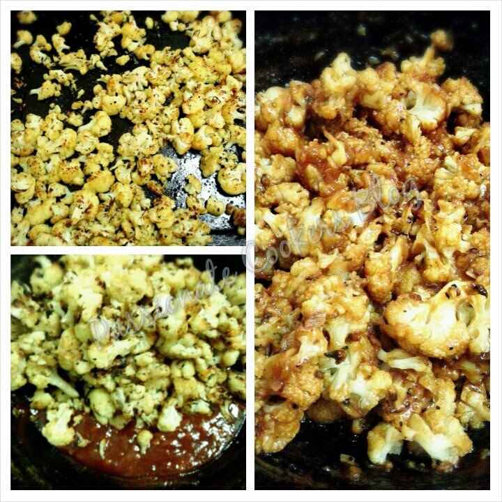 Once done add the roasted cauliflower to the sauce pan and mix well.